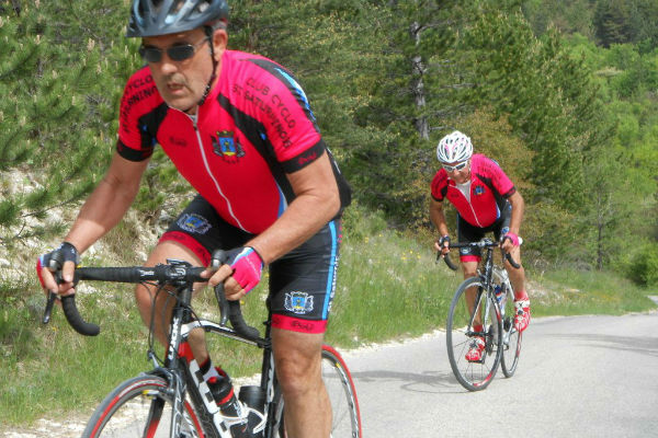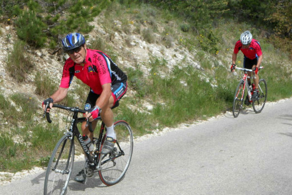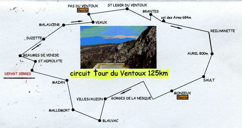 En fait nous avons fait le tour du Ventoux en passant par les cols de Suzette, de Veaux, des Aires puis la montée d'Aurel avec une variante par le hameau des Crottes où nous attendait un petit mur à 20%.(les photos des cyclos sont prises au sommet)