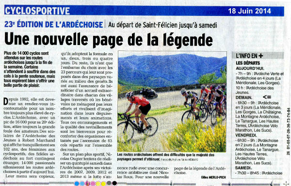 1 sur la cyclosportive " la Volcanique" en 1jour : 176 km avec 3210m de dénivelé.