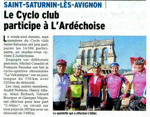 et 5 sur "l'Allier" en 3 jours 393 km avec 7480 m de dev.