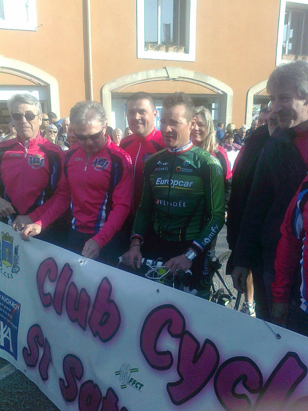 Et là c'est le défilé......une petite pose avec Sylvain CHAVANEL de chez IAM Cycling et porteur du maillot du meilleur grimpeur