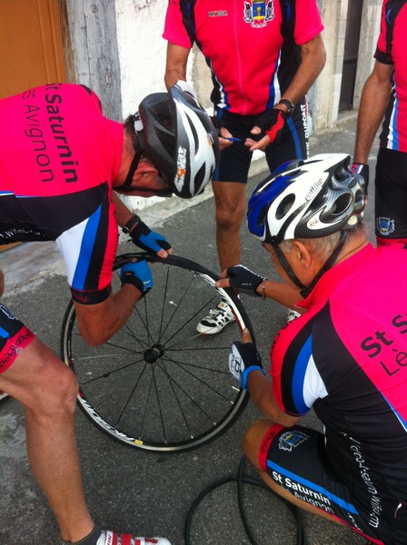 Départ du Raid Pontetien pas fait 50 mètres, crevaison de notre amis PATRICK